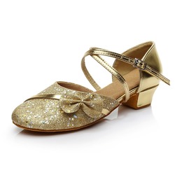 Neue PU Glitter Bow Kinder Latin Tanz schuhe Weiche Wildleder sohle 3,5 cm Tanz schuhe für Mädchen Cha-cha Mädchen Ballsaal Tanz schuhe