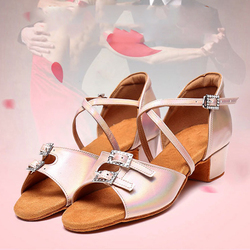 รองเท้าเต้นรำสำหรับเด็กผู้หญิง, รองเท้าเต้นลาตินพื้นหนังนิ่มพื้นนุ่ม3.5ซม. สำหรับเด็กผู้หญิงรองเท้าเต้นบอลรูม