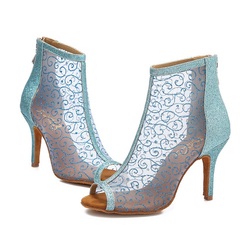 รองเท้าเต้นสุดเซ็กซี่แบบตาข่ายรองเท้าบูทสไตล์แจ๊สส้นเข็มสำหรับผู้หญิงรองเท้าเต้นแบบละตินพื้นนุ่มสำหรับใส่ในบ้าน