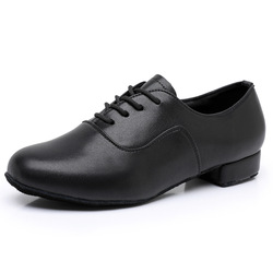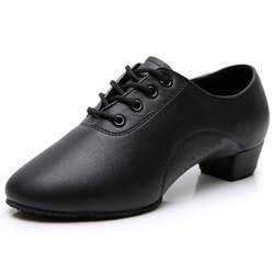 รองเท้าเต้นละตินของผู้ชาย PU รองเท้าเต้นรำสี่เหลี่ยม3.5ซม. รองเท้าฝึกซ้อมในร่มสีดำรองเท้าเต้นรำแบบละตินสำหรับเด็กขายส่ง